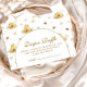 A warm and charming design featuring delicate honey bees, golden beehives, and soft botanical greenery arranged in a light, airy pattern. The gentle neutral palette paired with the elegant arched layout creates a sweet and inviting aesthetic that feels both playful and refined, perfect for a nature-inspired baby shower with a soft, storybook touch.