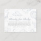 Hot Air Balloon Toile Baby shower Livres pour Baby Card : Description du produit : Encouragez vos invités à partager leurs histoires préférées avec ce Hot Air Balloon Toile Baby shower Livres pour Baby Card. Dotée d'un design intemporel d'inspiration toile de Jouy aux fleurs bleues poussiéreuses, cette carte est le complément parfait à une élégante fête du jardin, un baby shower fleuri ou un thème de baby shower vintage français. Ornée d'illustrations délicates de montgolfières et d'animaux de safari de charme comme des girafes et des éléphants, cette carte ajoute une touche fantaisiste mais élégante à votre baby shower. Invitation vos invités à apporter un livre au lieu d'une carte, en créant une belle bibliothèque pour votre petit tout en restant fidèle à votre thème de baby shower élégant. Conçu pour s'adapter à votre baby shower toile de Jouy et à vos éléments de baby shower animal safari, cette carte est un moyen agréable de recueillir des messages sincères et de construire une collection chère de livres pour votre enfant. Les illustrations peuvent être soumises à l'IA.