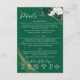Partagez les détails importants du mariage avec cette carte d'accompagnement élégante aux roses vert émeraude. Le design floral sophistiqué à l'aquarelle présente des éléments botaniques doux parfaits pour les mariages en plein air, les célébrations de vignoble ou les cérémonies classiques. Utilisez pour les informations de réception, les directions, les détails d'hébergement ou les informations de registre. Coordonne parfaitement avec les suites d'invitations assorties pour une collection de papeterie cohérente.