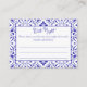Carte à insérer pour une soirée en amoureux avec des carreaux italiens bleus pour une baby shower de mariage - Carte d'accompagnement sur le thème La Dolce Vita pour que les invités partagent leurs idées de soirées en amoureux préférées avec les mariés. Celles-ci peuvent être lues à voix haute pour une activité amusante.