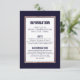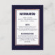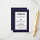 Carnet de détails rose en or imprimé à motif simple, moderne et élégant sur bleu marine et blanc, carte d'information Mariage. Ce design classique et sophistiqué est parfait pour un diplômé classe, élégant et tendance. Personnalisez avec votre propre message sur l'avant et un monogramme customisé sur l'arrière. Toute la conception d'impression photo.