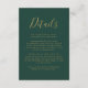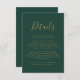 Doté d'un titre de script de style signature, cet élégant vert émeraude informations d'invité détails carte d'enceinte peut être personnalisé avec vos informations d'invité en lettres d'or chic. Conçu par Thisisnotme©