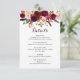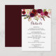 Carte d'information sur les détails du mariage de style bohème présentant une illustration aquarelle de pivoines et de roses bordeaux, rouges et roses avec accent de plumes. Ceci est parfait pour les événements d'automne et d'hiver. Veuillez cliquer sur le bouton "Personnaliser" pour modifier les polices, les tailles et les couleurs. Des articles assortis sont également disponibles.