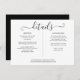 Une carte d'information sur les détails du mariage en noir et blanc élégante personnalisée avec vos détails spéciaux présentés dans une typographie élégante et vos noms et date de mariage au verso. Conçue par Thisisnotme©