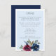 Éléments : un bouquet captivant accompagné d'une typographie élégante qui présente les détails de votre journée spéciale. Vos noms sont délicatement tracés en cursive ornée avec des accents serif fantaisistes Couleurs : bleu clair, bleu poudreux, bleu bébé, marine, bordeaux, mûrier. Thèmes : jardin enchanté, jardin secret, botanique, toute saison, fantasque, romantique, conte de fées. Collection : Jardin enchanté Lumière Bleu Bourgogne Collection de Mariages de la Marine Type de produit : Carte de boîtier