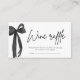 🍷 🎀 Ajoutez une touche de style à votre douche nuptiale grâce à ce billet de jeu moderne élégant à vin noir Bow Raffle ! Doté d'un design élégant et noir, ce billet élégant est parfait pour un cadeau amusant sur le thème du vin. Les clients remplissent leur nom et entrent pour une chance de gagner une bouteille de vin ou un prix spécial ! 🖤 ✨ Une façon simple et élégante d'ajouter de l'excitation à votre célébration tout en gardant le thème chic sans effort.