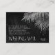 Optez pour un look glamour Old Hollywood en utilisant les pièces de cette suite mariage comme indiqué, avec des bijoux en cascade des feuilles de palmiers incrustés de diamants ou supprimer les couches de bijoux pour un look un peu plus conservateur. Cet ensemble présente des feuilles en argent chatoyant contre un arrière - plan texturé au charbon de bois foncé. Cette carte "Wishing Well" mariage est dotée d'une bordure d'angle de feuilles pétillants, et d'une police Serif élégante à ajouter à la romance, ainsi que d'un modèle pour ajouter facilement vos initiales et votre date de mariage. Choisissez parmi trois poèmes originaux différents pour convenir à vos options de cadeaux désirées pour vos invités. Visualisez le lien de collection sur cette page pour voir d'autres versets dans cette belle conception ou recherchez ID830 pour voir des choix de couleurs supplémentaires pour cette conception.
