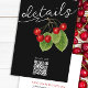 Cette carte mariage à double face chic présente une illustration botanique vintage de cerises rouges vibrantes aux feuilles verts, élégamment accrochée au-dessus du mot "Détails" dans la calligraphie blanche élégante, le tout contre un arrière - plan noir élégant. Un code QR moderne en noir et blanc permet aux clients d'accéder facilement à votre site Web mariage ou à des outils de marketing numérique. L'envers présente un élégant script noir et rouge sur un fond blanc propre. Entièrement personnalisable, vous pouvez remplacer le texte et les codes QR par vos propres détails. Parfait pour un mariage de plein air rustique, explorez notre collection Cherry Mariage pour des produits assortis pour compléter votre thème.