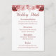 Pour plus d'informations sur le mariage, ajoutez cette belle carte de boîtier mariage à thème aquarelle à vos invitations. En utilisant un arrière - plan blanc, tout le texte est présenté en belle police bordeaux. Le dessus de la carte a une belle aquarelle de l'art floral. Personnalisez votre carte de boîtier aujourd'hui!