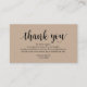 Carte D'accompagnement Kraft rustique, Script noir, Merci Mariage