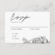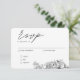 Mariage de script minimaliste classique carte de boîtier RSVP personnalisée avec vos informations. Entrez l'outil de conception Zazzle pour une personnalisation plus poussée, comme l'emplacement de texte ou pour ajouter une quatrième option de repas. Assurez-vous de comparer les différents types de papier pour sélectionner votre texture préférée et de vérifier la collection complète pour acheter les enveloppes de publipostage correspondantes.