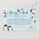Ajoutez une touche de charme hivernal à votre baby shower avec notre carte "Apportez un livre pour la bibliothèque de neige pour bébés !". Cette carte adorable invitation vos invités à apporter leur livre préféré pour enfants, créant une bibliothèque d'histoires et de souvenirs chère pour votre petit. Avec un design délicieux avec des pingouins peints à la main, des igloos et des flocons de neige sur un arrière - plan bleu glacé, c'est la meilleure façon d'inspirer un amour pour la lecture dès le premier jour.