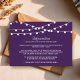 Simple mais élégant, les lampes à cordes de la collection mariage violet est un design étonnant avec de belles lumières à cordes blanches suspendues sur un arrière - plan violet, qui est parfait pour toute célébration mariage moderne. Ces cartes d'encart peuvent être personnalisées pour votre occasion spéciale et rendraient parfait les détails, l'information, l'hébergement, l'orientation, le registre des cadeaux ou la carte de voeux pour votre mariage, douche nuptiale, fête de fiançailles, fête d'anniversaire et bien d'autres occasions spéciales. Ajoutez votre libellé personnalisé à cette conception à l'aide des cases "Modifier ce modèle de conception" situées à droite de l'élément, ou cliquez sur le bouton bleu "Customiser" pour arranger le texte, modifier les polices et les couleurs et ajouter des informations ou des images supplémentaires à cette conception.