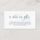 Carte de présentation de Mariage/anniversaire/célébrations de la Marine moderne, lettre à main bleue, une note sur les cadeaux. Vous pouvez modifier les couleurs de police, et ajouter vos détails dans la police / lettering correspondante. Conçu par TeeshaDerrick