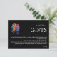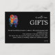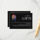 Présentation de la collection Eternal Unity : Horizontal Note on Gifts Card, un ajout réfléchi à votre papeterie mariage qui s'harmonise parfaitement avec l'ambiance intemporelle et sophistiquée de la collection. Le devant de la carte est orné d'une toile de fond captivante ornée de l'oeuvre complexe de la Collection de l'Unité Éternelle. Cette oeuvre présente deux chouettes dépeintes de manière complexe, se faisant face au milieu d'un arrière - plan noir sophistiqué, symbolisant l'unité, l'amour durable et l'élégance. Les hiboux créent un ensemble harmonieux et visuellement attrayant contre l'arrière - plan noir, faisant une déclaration frappante. Une légende bien en vue, "A Note on Gifts", donne le ton, indiquant le but de la carte. De plus, un espace texte personnalisable sur le devant permet au couple de transmettre un message personnalisé ou de fournir des détails spécifiques concernant les cadeaux. Tournez-vous vers l'arrière, où un arrière - plan noir sophistiqué sert de toile à la photo d'un couple chéri. Cette touche personnalisée ajoute un élément chaleureux et intime à la carte, permettant aux clients de se connecter avec le couple à venir sur un niveau plus personnel. Sous la photo, l'adresse du site du mariage est affichée en blanc, offrant aux clients un accès pratique à des informations complémentaires ou à des informations sur le registre des cadeaux. En résumé, la Collection de l'unité éternelle : Note horizontale sur la carte cadeau fournit non seulement de la clarté sur les aspects du cadeau, mais ajoute aussi une touche de personnalisation et de chaleur à travers la photo du couple. Le design cohésif et les détails soignés en font un ajout élégant et pratique à votre papeterie mariage, assurant une présentation mémorable et élégante pour vos invités.
