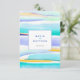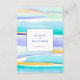 Carte de détails du boîtier mariage d'art moderne avec QR personnalisé. Un design d'art moderne et simple, idéal pour une plage contemporaine ou un mariage tropical. Autres éléments correspondants et différentes couleurs disponibles. Personnalisez avec vos propres détails de mariage, les directions, l'horaire, l'hébergement et le don ainsi qu'un lien vers votre site Web mariage si nécessaire. © Original art abstrait lignes tropicales marées en bleu, aqua turquoise, beurre jaune et blanc peint à l'encre et à la gouache et dessiné par Sarah Trett pour www.mylittleedenweddings.com