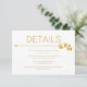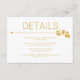 Cette carte de détails est un choix élégant pour tout mariage, avec une ligne dorée avec une branche et des feuilles d'un côté et un point de l'autre, sur fond blanc. Le verso présente un motif diagonal personnalisable avec les noms des mariés en or, ajoutant une touche gracieuse. Si les noms occupent plus ou moins d'espace, il suffit d'ajuster la taille de la police en conséquence.