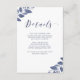 Cette belle et élégante enceinte d'informations sur les mariages botaniques présente des feuilles bleus sur un arrière - plan blanc. Vous pouvez utiliser ces cartes pour inclure des informations sur la réception de votre mariage, les itinéraires routiers, l'hébergement et tout ce que vous avez besoin de connaître de vos invités.