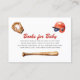 Hit a home run for your baby shower with this charming baseball-themed "Books for Baby" request card. This design features adorable watercolor illustrations of a baseball glove, bat, and helmet, perfect for a little slugger on the way. The playful script font announces 'Books for Baby' with a heartfelt message encouraging guests to bring a book instead of a card, which will be signed by the guest to create a lasting keepsake. Celebrate your new arrival with a touch of sporty fun and build a wonderful library for your little one from day one.