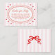 Encourage a meaningful keepsake gift with this sweetheart books for baby insert card, designed to coordinate with a Valentine-inspired baby shower theme. “Books for Baby” is displayed in elegant red script above a heartfelt message inviting guests to bring a book in place of a traditional card. The request is framed within a hand-drawn scalloped oval, set against soft pink and white stripes accented with scattered red hearts. Finished with a coordinating bow design on the back, this insert is a charming addition to sweetheart-themed or February baby showers, adding a thoughtful touch to the invitation suite.