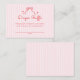 Celebrate a Valentine’s baby shower with this sweet diaper raffle enclosure card. Designed for a baby girl, it features soft pink stripes and a hand-drawn red bow. This cute, girly, and modern enclosure card has a subtle coquette feel while keeping the design simple, elegant, and easy to personalize - making it the perfect party supply for a love-filled celebration welcoming a baby girl.