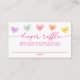 Add a fun and festive touch to a sweetheart-themed baby shower with this conversation heart diaper raffle card, perfect for celebrating a baby girl. Colorful candy heart illustrations line the top of the design, featuring charming phrases like “It’s a Girl!” in soft pink, purple, mint, orange, and yellow hues. “Diaper Raffle” is displayed in elegant pink calligraphy, with space below for raffle instructions and guest names, allowing each guest to use the card as their raffle ticket. Bright, playful, and Valentine-inspired, this diaper raffle card is a sweet addition to February baby showers and sweetheart-themed celebrations welcoming a baby girl.