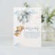 This adorable book for baby card features a sweet watercolor teddy bear with soft blue balloons and fluffy clouds, creating a charming and gentle design perfect for a baby boy celebration. The soft blue tones and cute teddy bear artwork bring a warm storybook feel that beautifully matches a teddy bear baby shower theme.
