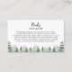 Fêtez l'arrivée prochaine d'un petit avec notre Elegant Watercolor Pine-Tree Baby shower Books for Baby Encape Card. Cette carte magnifiquement conçue est l'ajout parfait à vos invitations de douche bébé, encourageant les invités à apporter un livre chéri pour commencer la bibliothèque de bébé. Cette carte d'enceinte présente des pins d'aquarelle délicats ornant le fond, ajoutant une touche d'élégance naturelle à la carte. Les oeuvres d'art saisissent la beauté sereine d'une forêt d'hiver, ce qui en fait un endroit idéal pour les baby showers en hiver. Appuyez sur le bouton fourni pour personnaliser le texte. Vous serez ravis !