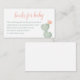 Une belle carte à thème du désert Books For Baby Box. Faites savoir à vos clients du baby shower que vous demandez un livre au lieu d'une carte. Dispose d'une délicate illustration de cactus aquarelle dans des tons apaisants de rose et de vert. S'accorde parfaitement avec l'Invitation de Baby shower Oh Baby Cactus dans cette collection. Parfait pour un baby shower boho ou moderne du sud-ouest. Cliquez sur le bouton "Personnaliser" pour ajouter votre propre libellé.