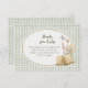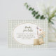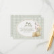 Célébrez l'arrivée imminente de votre petit bout avec notre charmant carton "Livres pour bébé" pour Baby Shower Cottage. Ce design magnifiquement réalisé capture l'essence d'une célébration rustique et cosy, parfaite pour honorer ce moment spécial. La carte présente un fond gingham vert ravissant, évoquant la chaleur et le charme intemporel d'un cottage vintage. Ce motif classique crée une atmosphère sereine et accueillante, donnant le ton parfait pour votre baby shower.