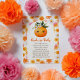 Encouragez l'amour de la lecture avec une touche sucrée et citronnée ! Cette Little Cutie Orange Citrus Fruit Books for Baby Encape Card présente une adorable aquarelle orange, des fleurs colorées de marguerite et des détails ludiques et fantaisistes. Parfait pour ajouter à une invitation baby shower ou à une faveur, il rappelle gentiment aux clients d'apporter un livre pour le bébé, ce qui en fait un ajout amusant et charmant à votre célébration. Facilement personnalisable pour s'adapter aux détails de votre fête et à la décoration sur le thème des agrumes.