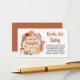 Carte d'enceinte de baby shower rustique mignonne avec "A Sweet Little Citrouille Is On Her Way" et "Livres pour bébé" en typographie simple et un script en terre cuite, et une couronne d'aquarelle composée d'un tronc d'arbre orné de mignons animaux de bois (hibou, cerf, écureuil et renard), fleurs d'automne et citrouilles.