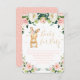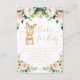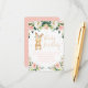 Des flûtes d'aquarelle rose et un lapin d'aquarelle brun bordent la carte de boîtier avec "Livres pour bébé" en script en haut. La carte dit, "une petite demande que nous espérons n'est pas difficile/ s'il vous plaît apporter un livre au lieu d'une carte/ signer l'intérieur et nous nous souviendrons et partagerons / votre cadeau spécial même si vous n'êtes pas là."