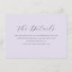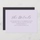 This elegant wedding enclosure card features a soft lavender background with an understated, sophisticated design. The typography is refined and cursive, adding a touch of timeless romance to the overall look. It conveys a calm and inviting mood, perfect for guiding guests through important details about their special day. Ideal for couples aiming for a classic yet modern aesthetic, this card seamlessly complements any wedding theme while maintaining a sense of personal elegance.
