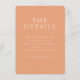 This elegant wedding enclosure card features a minimalist and sophisticated design with a soft peach background, creating an inviting and warm atmosphere. The clean typography adds a touch of modernity while maintaining a classic feel, perfect for conveying essential details about the special day. Ideal for couples who appreciate understated elegance, this card seamlessly complements any wedding theme, ensuring guests have all the information they need in a stylish format.