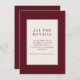 This elegant wedding enclosure card features a sophisticated maroon and cream color palette, exuding an air of timeless elegance. The clean typography is simple yet refined, ensuring that the focus remains on the essential details while maintaining a classic charm. Perfect for guiding guests to additional information about accommodations and event specifics, this design captures the essence of a polished and well-planned celebration. Its minimalist style makes it versatile for various wedding themes, offering a touch of class to your special day.