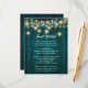 Offrez à vos invités des détails importants avec cette carte d'invitation de mariage sarcelle rustique avec des lumières de chaîne sur un fond de bois de grange. Articles assortis disponibles.