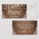 Vous souhaitez vous assurer que vos invités passent un bon moment lors de votre événement ? Ce bon de boisson avec des guirlandes lumineuses rustiques est un excellent moyen de s'assurer que tout le monde reçoit une boisson tout en ajoutant une touche de charme à votre fête. Le design rustique avec des guirlandes lumineuses et un fond en bois est sûr d'impressionner vos invités. Vous pouvez facilement personnaliser ce modèle à l'aide de l'outil de conception de Zazzle pour le rendre unique pour votre événement. Ce bon est parfait pour quiconque souhaite s'assurer que ses invités passent un bon moment tout en ajoutant un peu de charme à leur fête.