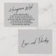 Ces inserts de carte simples et distinctifs ont été conçus pour correspondre à d'autres éléments dans une suite événementielle en pleine croissance qui comprend une police d'écriture décontractée moderne sur un arrière - plan simple que vous pouvez changer à n'importe quelle couleur que vous voulez. Sur le côté avant vous lisez "Honeymoon Wish" dans le type présenté; sur le dos, j'ai placé une correspondance "Love and Thanks". Le type modifiable est rendu dans une police serif entièrement casquette. Mon message porte-monnaie dit : "La chose la plus importante est de vous avoir avec nous lors de notre journée spéciale. Aucun cadeau n'est nécessaire ou attendu, mais on nous a demandé ce dont nous avions besoin ou ce que nous voulions. Si vous voulez nous donner quelque chose, un peu d'argent à dépenser pour notre lune de miel serait très apprécié." N'hésitez pas à utiliser les champs du modèle et à modifier cette copie avec votre propre message personnel pour faire de ces cartes votre propre carte. // 151 //