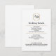 Complétez votre suite de mariage de luxe avec la carte d'accompagnement de mariage Imperial Luxe, conçue dans notre style signature de minimalisme moderne et royal. Cette insertion aux détails raffinés présente un emblème de monogramme impérial centré en or métallisé doux, associé à une typographie élégante à contraste élevé avec des empattements et un texte de corps moderne et clair sur un fond blanc croustillant.