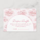 Celebrate a timeless and romantic baby shower with this elegant pink toile design, featuring delicate vintage countryside illustrations in soft blush tones. The refined arch layout creates a beautiful focal point for your event details, blending classic European charm with a modern, feminine aesthetic. Perfect for a chic, storybook-inspired celebration, this design feels both graceful and effortlessly sophisticated—ideal for creating a memorable and stylish gathering.