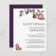 Jolies, élégantes, chic et modernes, les cartes d'accompagnement pour les détails destinés aux invités de mariage pour votre occasion spéciale ! Des bourgeons de fleurs de magnolia violet aquarelle dans des feuilles vert clair et doux, avec de jolis macarons sucrés encadrent le haut de vos cartes d'accompagnement pour les détails destinés aux invités de mariage. Personnalisez avec les détails souhaités tels que les réservations d'hôtel, les codes de groupe, le transport, les directions, les informations sur la réception de bienvenue et l'URL de votre site web de mariage. Conçues pour être coordonnées avec notre collection d'invitations de mariage et d'événements Happy Macaroons | Violet Floral.