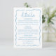 Élevez chaque détail de votre mariage avec nos cartes d'enceinte verticales fantaisie bleu et blanc crépusculaire clair ! Conçus pour compléter notre collection enchanteresse, ces ajouts de charme ajoutent une touche de personnalité et de chaleur à votre suite de papeterie. Avec le même cadre ondulé et la typographie de script illustrés à la main, nos cartes de boîtier combinent harmonieusement votre thème mariage, créant une expérience cohésive et captivante pour vos invités. Que vous fournissiez des renseignements supplémentaires sur les logements, les itinéraires ou que vous partagiez simplement un message sincère, nos cartes bleues blanches de clôture assurent que chaque aspect de votre célébration est imprégné du même esprit fantaisiste qui rend votre histoire d'amour unique. Rejoignez-nous pour donner vie à votre vision mariage, un détail délicieux à la fois. Laissez nos cartes d'enclos être la touche finale que les feuilles une impression durable sur vos invités, stimulant l'excitation et l'anticipation pour le printemps magique, l'été ou l'hiver à venir.