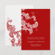 Conception élégante de paon rouge bohème avec des détails floraux et une queue faite de formes paisley. Un design de mariage oriental ou asiatique très unique, chic et classe pour le couple moderne et élégant.