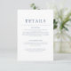 Complétez votre suite mariage avec l'élégance sobre de notre Simple Dusty Blue Mariage Enclôture Card. Doté d'un texte bleu poussiéreux et d'un design épuré et minimaliste, cette carte est parfaite pour partager avec vos invités les détails essentiels tels que l'hébergement, les itinéraires ou les informations d'itinéraire.
