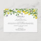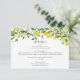 En été, simple et élégante, cette carte à thème citron mariage détails enclos présente des branches de citronniers aux couleurs vives, des fleurs blanches et des papillons d'été. Vous pouvez customiser tous les détails du texte et du placement graphique à vos besoins spécifiques.