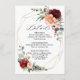 Carte de détails de mariage Burgundy Peach Brûlé Orange avec un bouquet élégant de bourgeons de fleurs de rose de couleur bourgogne, rouge, Marsala, marron, pêche, rose saumon, corail et blush et feuilles d'eucalyptus vert sauge. Veuillez me contacter pour toute aide de personnalisation ou si vous avez besoin d'un autre produit avec ce design.