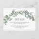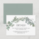 Cet élégant écrin vert sauge et blanc eucalyptus détails de la réception mariage est un bel ajout à toute suite de faire-part de mariage. La carte comporte une police de typographie et des feuilles botaniques d'aquarelle. La carte est entièrement personnalisable, vous pouvez donc la personnaliser avec votre propre libellé et détails. C'est la façon idéale pour vos invités de voir les détails de la réception pour votre journée spéciale.