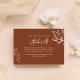Complétez votre suite RSVP mariage de automne avec cette carte de réponse élégante pour invités de mariage. Conçu pour un mariage d'automne, il présente des feuilles d'automne saisonnières et des détails de feuillage d'automne, alliant charme intemporel et commodité moderne. Les clients peuvent répondre facilement en utilisant le code QR inclus lié à votre site mariage, ce qui rend la planification transparente. Une carte de réponse élégante et fonctionnelle, parfaite pour organiser vos fêtes d'automne tout en mettant en valeur l'élégance saisonnière.