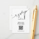 Ces cartes de boîtier modernes en noir et blanc sont un moyen facile pour vos invités à RSVP sur votre site Web. Pour créer votre propre site QR Code, entrez simplement son URL dans la zone de texte lors de la personnalisation de vos cartes. **Le service de design en direct peut vous aider à organiser votre design ou vos couleurs si nécessaire.